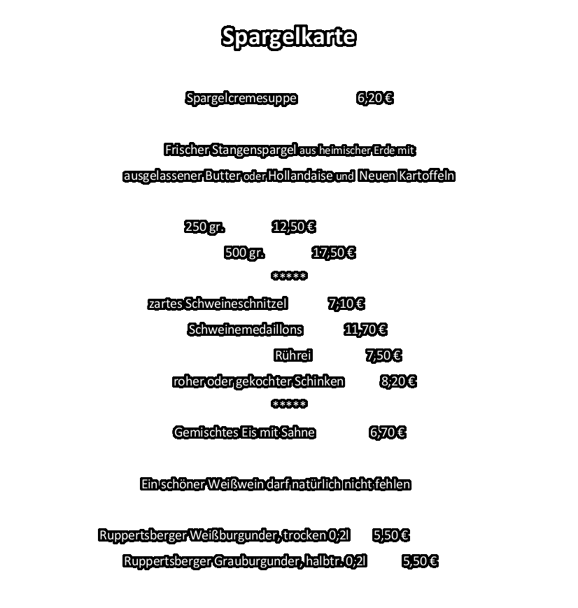 Die Spargelsaison ist eröffnet ! Aus heimischer Erde, frisch zubereitet... ...mit Butter oder Sauce Hollondaise.